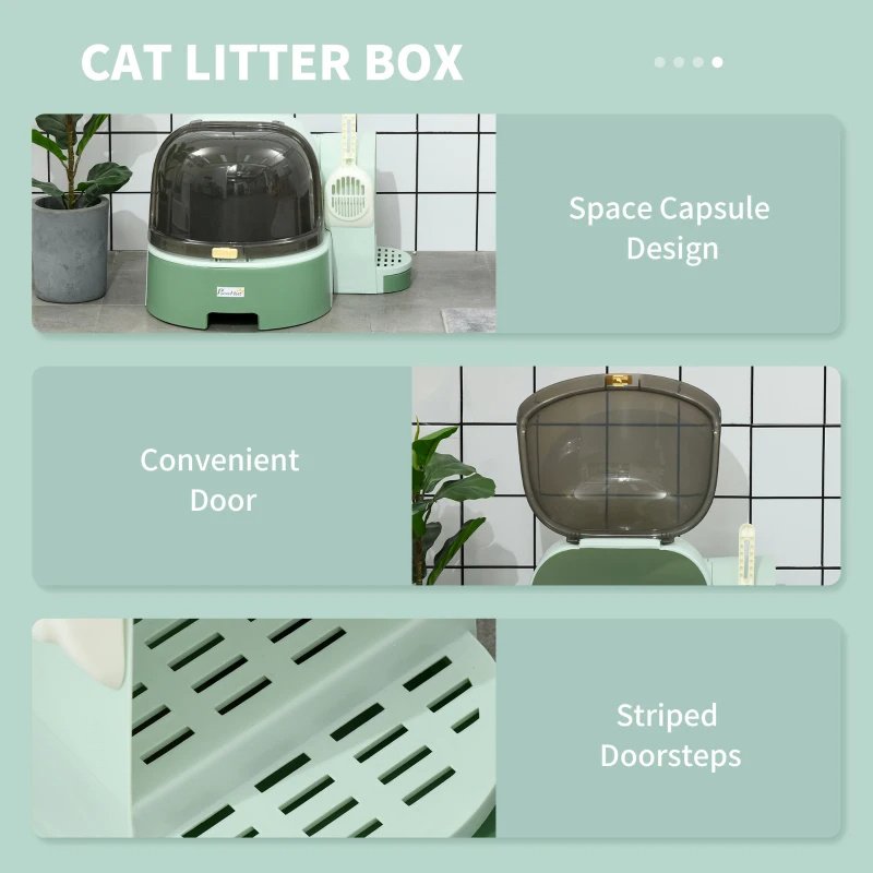 - – Cute-Shape Design: Our kitty litter box with lid is visually appealing with a space capsule-like shape for futuristic charm. The enclosed surroundings provide a heightened sense of security for your cat.