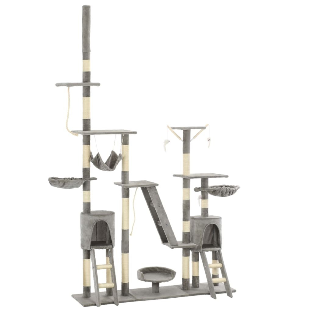 Treat your purring friends to a touch of luxury with our cat tree! Your feline companions can sharpen their claws on the sisal-wrapped scratching posts, satisfying their scratching instincts in a healthy way. They’ll also love chasing each other as they jump up and down this fun playground. They can hide in the cozy houses for a nap or relax in the comfortable baskets or hammock. With all its fun features, this cat tree will quickly become your cats’ favorite spot! The cat tree is easy to assemble.